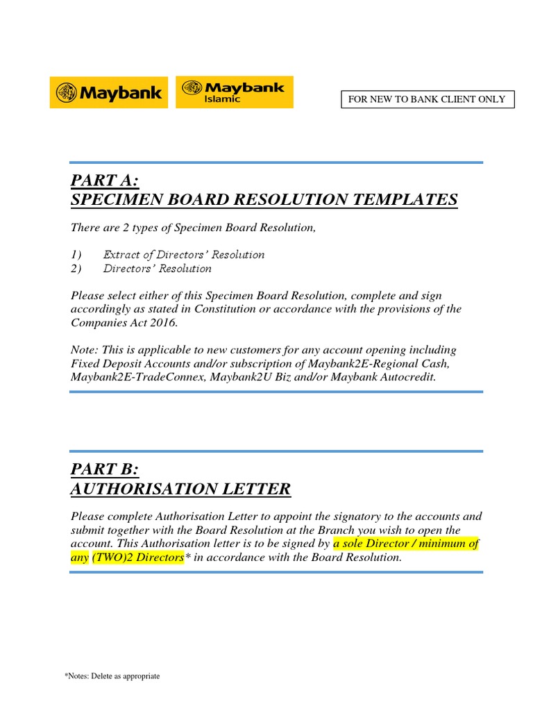 Company Resolution Mandate Pdf Maybank